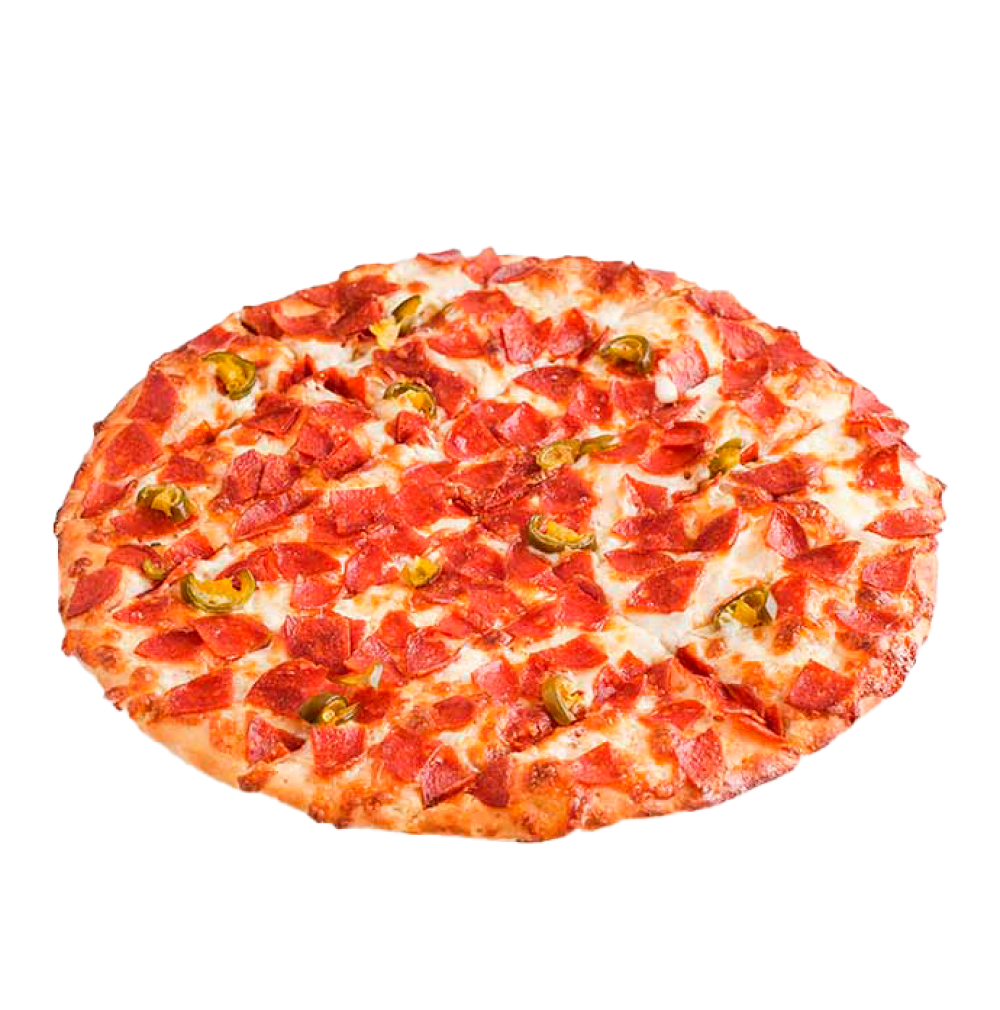 Сосиски «Пепперони», сыр «Моцарелла», соус «Ранч», перец халапеньо.