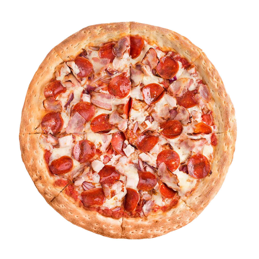 Салями, томатный соус, сыр «Моцарелла», бекон, красный лук, куриное филе