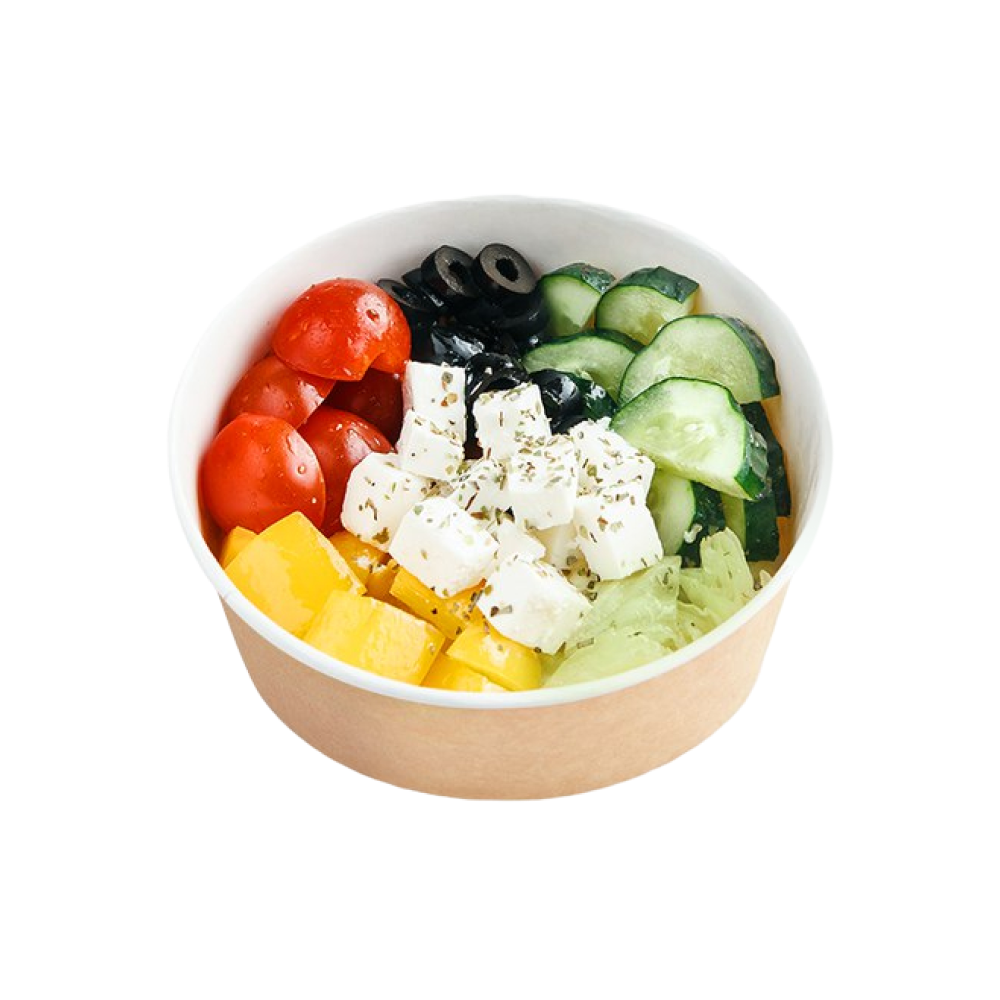 Помидоры, орегано, сыр «Брынза», оливки, перец, огурцы, оливковое масло, листья салата «Айсберг».