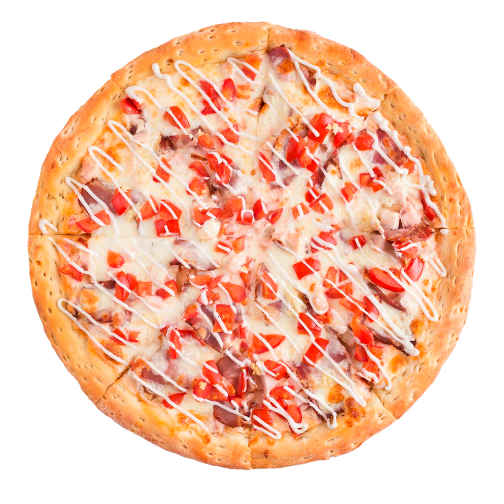 Помидоры, сыр «Моцарелла», ветчина, куриное филе, соус «Ранч»